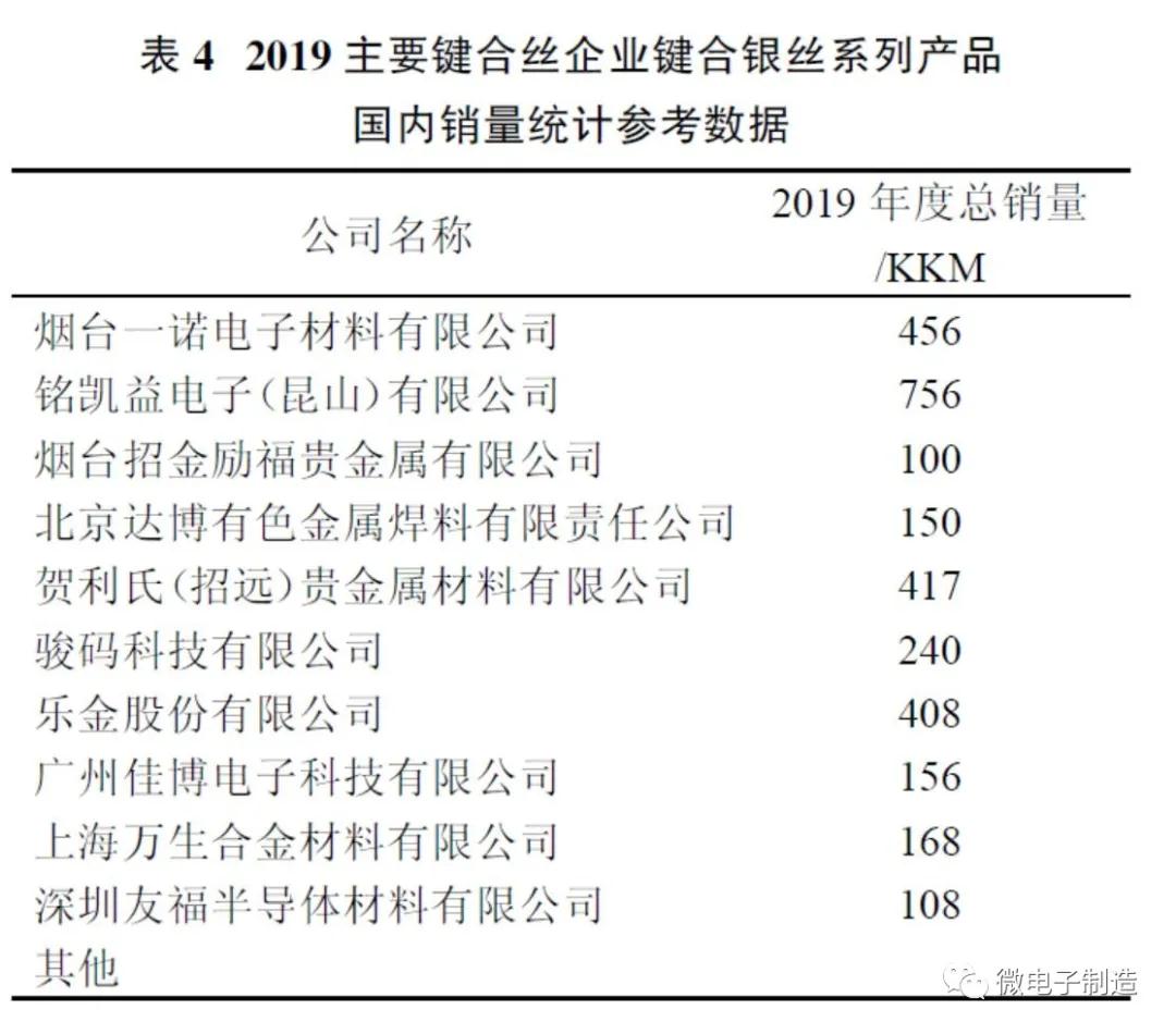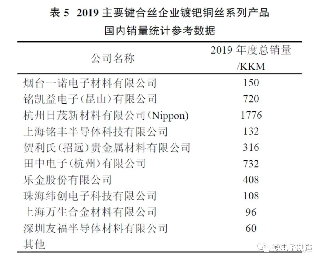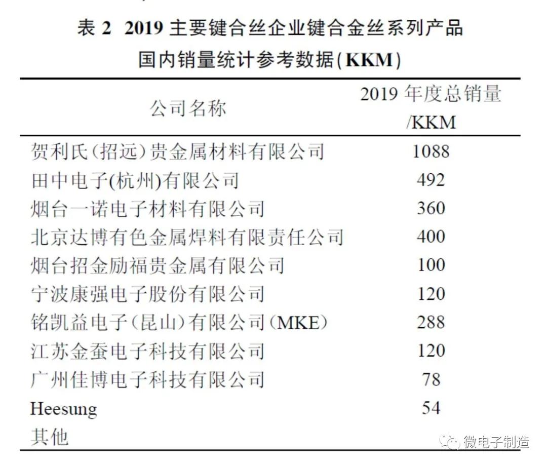 2019年中國半導體分立器件封裝規(guī)模數(shù)量8 068億只,鍵合絲需求總量20億米,大功率器件因為高鐵、能源汽車的快速發(fā)展,需求增長很快,雖然規(guī)模不及小功率器件,但對鍵合絲本身的增長也具有一定的提升作用。