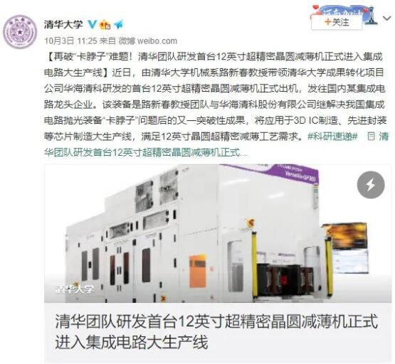 這是路新春教授團隊與華海清科解決我國集成電路拋光裝備“卡脖子”問題之后,又一突破性成果,將應(yīng)用于3D IC制造、先進封裝等芯片制造大生產(chǎn)線,滿足12英寸晶圓超精密減薄工藝需求。