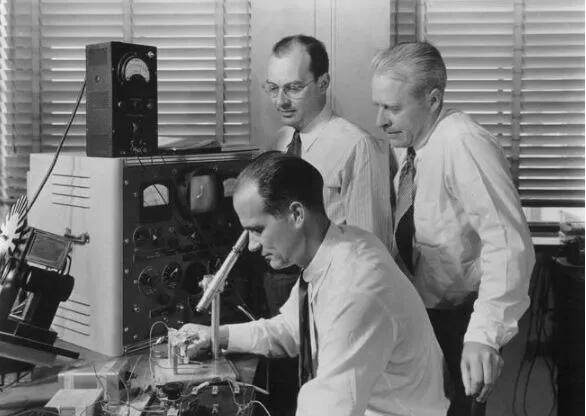 ?? 1956年,肖克利、巴丁、布拉頓三人,因發(fā)明晶體管同時(shí)榮獲諾貝爾物理學(xué)獎(jiǎng)。肖克利被稱(chēng)為“晶體管之父”,利用他的名聲,招募了一批杰出的年青科學(xué)家,其中有大名鼎鼎的“八叛逆”,為后續(xù)一大批知名半導(dǎo)體公司的創(chuàng)立打下了基礎(chǔ)。