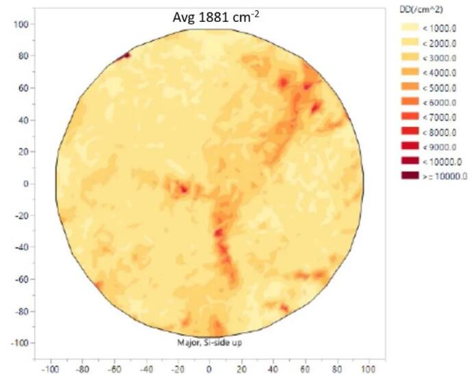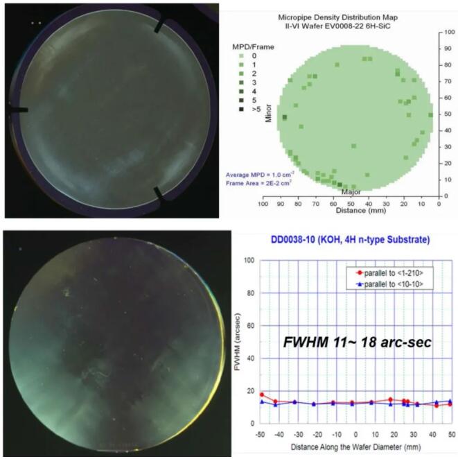 這些無缺陷的大直徑晶體是使用新的全自動生長平臺生長的,而且,II-VI成功將200mm 4HN SiC的位錯密度降低到1881cm-2 ,其中包括598 cm-2的螺桿密度和272 cm-2的基面密度。