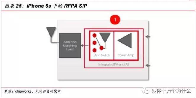 RFPA模塊。手機(jī)中的RFPA是最常用SiP形式的。iPhone 6S也同樣不例外,在iPhone 6S中,有多顆RFPA芯片,都是采用了SiP。
