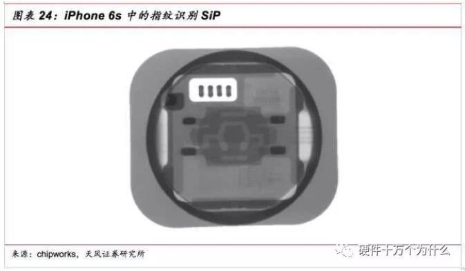 指紋識別同樣采用了SiP封裝。將傳感器和控制芯片封裝在一起,從iPhone 5開始,就采取了相類似的技術(shù)。