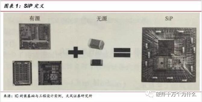 根據(jù)國際半導(dǎo)體路線組織(ITRS)的定義:SiP為將多個具有不同功能的有源電子元件與可選無源器件,以及諸如MEMS或者光學(xué)器件等其他器件優(yōu)先組裝到一起,實現(xiàn)一定功能的單個標(biāo)準(zhǔn)封裝件,形成一個系統(tǒng)或者子系統(tǒng)。