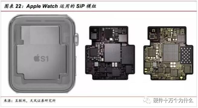 從蘋果產(chǎn)品看SiP應(yīng)用。蘋果是堅定看好SiP應(yīng)用的公司,蘋果在之前Apple Watch上就已經(jīng)使用了SiP封裝。