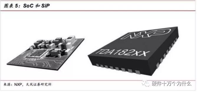 SoC與SIP是極為相似,兩者均將一個包含邏輯組件、內(nèi)存組件,甚至包含被動組件的系統(tǒng),整合在一個單位中。SoC是從設(shè)計的角度出發(fā),是將系統(tǒng)所需的組件高度集成到一塊芯片上。SiP是從封裝的立場出發(fā),對不同芯片進(jìn)行并排或疊加的封裝方式,將多個具有不同功能的有源電子元件與可選無源器件,以及諸如MEMS或者光學(xué)器件等其他器件優(yōu)先組裝到一起,實現(xiàn)一定功能的單個標(biāo)準(zhǔn)封裝件。