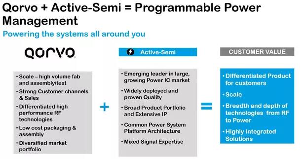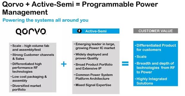 Qorvo 總裁兼首席執(zhí)行官 BobBruggeworth 曾所,通過收購 Active-Semi,Qorvo 將會增加提供給現(xiàn)有客戶的 IDP 產(chǎn)品(包括 5G 基站、有源相控陣、汽車和物聯(lián)網(wǎng)),并將其的業(yè)務范圍拓展到新的高增長電源管理市場。Qorvo深信,通過利用公司的全球規(guī)模、銷售渠道和客戶關系,在多個市場上加快采用Active-Semi 創(chuàng)新的模擬/混合信號解決方案,我們將會獲得大量機會。”