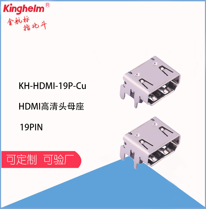 高清多媒體接口(High Definition Multimedia Interface,HDMI)是一種全數(shù)字化視頻和聲音發(fā)送接口,可以發(fā)送未壓縮的音頻及視頻信號。HDMI可用于機(jī)頂盒、DVD播放機(jī)、個人計算機(jī)、電視、游戲主機(jī)、綜合擴(kuò)大機(jī)、數(shù)字音響與電視機(jī)等設(shè)備。HDMI可以同時發(fā)送音頻和視頻信號,由于音頻和視頻信號采用同一條線材,大大簡化系統(tǒng)線路的安裝難度。金航標(biāo)kinghelm團(tuán)隊也有這我們自己的HDMI母座,熱銷產(chǎn)品型號:KH-HDMI-19P-Cu