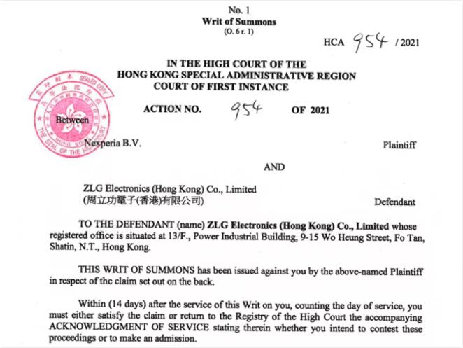 安世半導(dǎo)體起訴其分銷(xiāo)商周立功電子,香港高院公開(kāi)訴訟資料