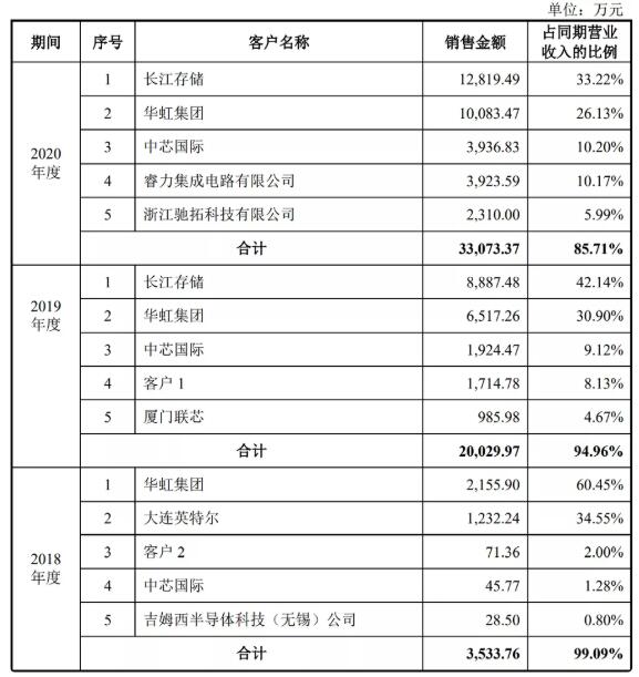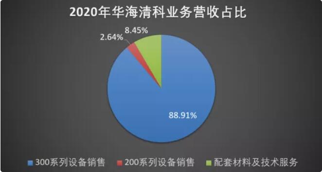 根據(jù)華海清科官網(wǎng),2013年4月10日該公司成立;2016年3月,華海清科首臺12英寸CMP設備Universal-300通過中芯國際驗收。 上會稿提到,華海清科以12英寸CMP設備作為基礎(chǔ),于2017年完成了對8英寸CMP設備Universal-200的研制。同年,該型號設備進入客戶端并完成驗收。2020年,華海清科12英寸減薄設備Versatile-GP300研制成功。 目前,華海清科的設備主要分為300系列和200系列,其中300系列主要應用于12英寸芯片產(chǎn)線,200系列設備則用于8英寸產(chǎn)線。 根據(jù)統(tǒng)計,300系列設備是華海清科的主營產(chǎn)品,2020年300系列設備銷售金額占總營收比例分別為88.91%,200系列占比為2.64%,配套材料及技術(shù)服務占比則為8.45%;2018年-2020年,300系列設備的銷售金額占華海清科營收占比分別為89.01%、92.39%和88.91%。