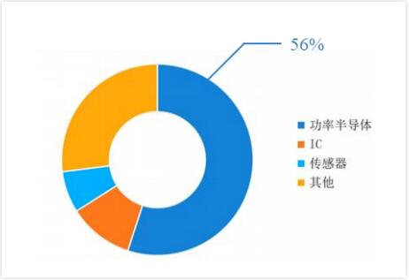 根據(jù)中商產(chǎn)業(yè)研究院的數(shù)據(jù)顯示,傳統(tǒng)汽車中功率半導(dǎo)體在汽車半導(dǎo)體中的用量占比約為21%,低于IC產(chǎn)品的用量(23%),但在純電動(dòng)新能源汽車中,功率半導(dǎo)體的用量顯著增加,在汽車半導(dǎo)體中的用量占比約達(dá)56%。