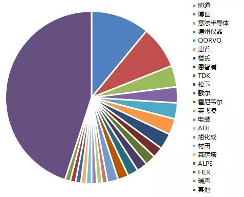 圖21 2019年中國MEMS市場(chǎng)廠商結(jié)構(gòu)