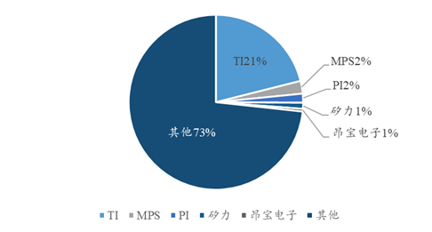 目前,全球電源管理芯片市場(chǎng)主要被國(guó)際巨頭公司壟斷。從2018年市場(chǎng)占有率來(lái)看,TI、高通、ADI、Maxim和英飛凌五家廠商合計(jì)占71%。此外,NXP、MPS、安森美和Diodes等國(guó)際廠商也擁有極強(qiáng)的技術(shù)和市場(chǎng)實(shí)力。而國(guó)內(nèi)電源管理芯片廠商則相對(duì)弱小而分散,整體實(shí)力仍比較薄弱。