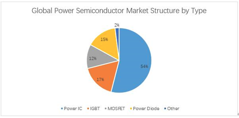 功率IC、IGBT、MOSFET和功率二極管是四種使用最廣泛的功率半導(dǎo)體產(chǎn)品。根據(jù)權(quán)威市調(diào)機(jī)構(gòu)分析,在2017年全球功率半導(dǎo)體市場(chǎng)上,功率IC占54%,是市場(chǎng)份額[敏感詞]的功率半導(dǎo)體產(chǎn)品。功率IC在半導(dǎo)體晶片上集成了晶體管、二極管、電阻器和電容器等組件,并具有所需的電路功能。根據(jù)應(yīng)用不同,功率IC包括AC-DC轉(zhuǎn)換、DC-DC轉(zhuǎn)換、電源管理和驅(qū)動(dòng)器IC等。