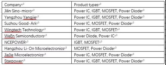 下表列出了部分國(guó)產(chǎn)功率半導(dǎo)體廠商及其主要產(chǎn)品。