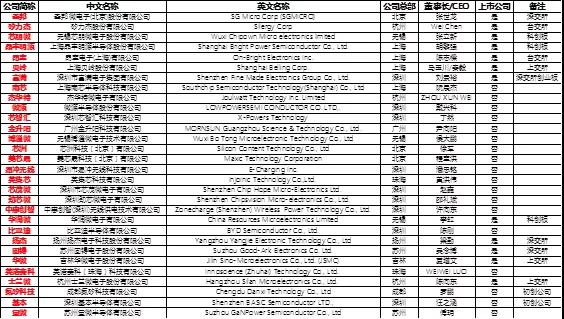 30家國(guó)產(chǎn)電源管理芯片和功率半導(dǎo)體廠商信息統(tǒng)計(jì)表: