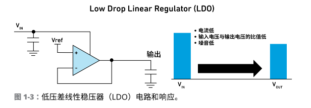 對(duì)于線性穩(wěn)壓器,一種重要的類型是低壓差(LDO)線性穩(wěn)壓器。在 VIN和 VOUT 相差很小時(shí),LDO。能持續(xù)輸出穩(wěn)定的 VOUT。