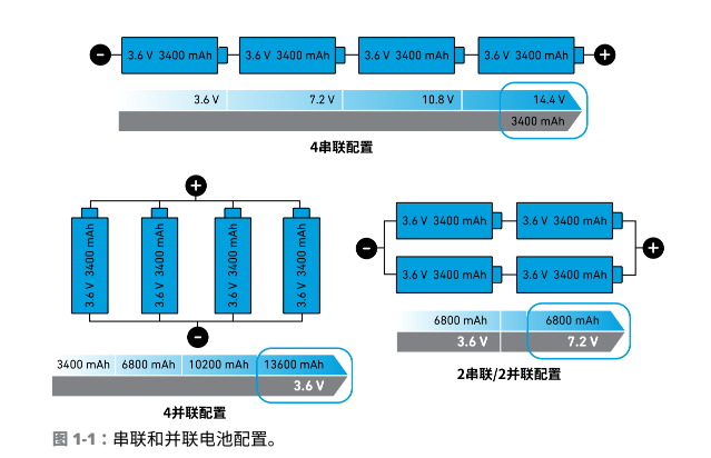 串聯(lián)電池可提高電池組電壓,同時(shí)提高整個(gè)電池組容量。