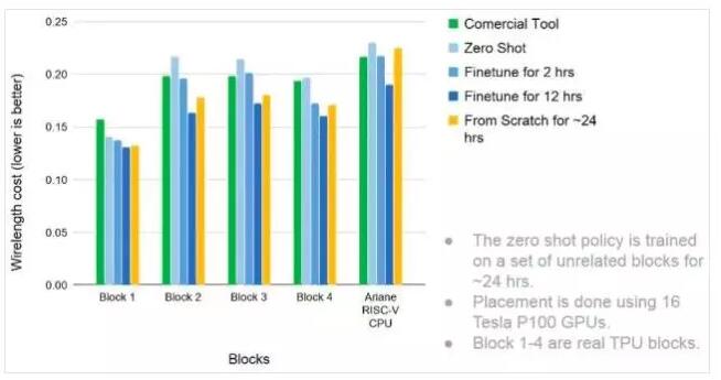 Google將使用機器學習布局和布線的效果與商用軟件進行了比較。 測試電路是幾個不同的模塊,包括Ariane RISC-V CPU。(來源:Google Research / ISSCC)