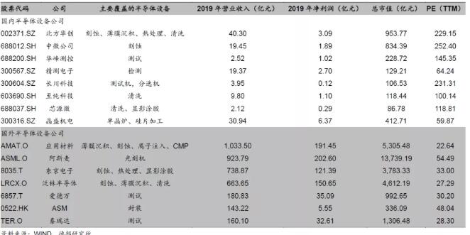 國內(nèi)外主要半導(dǎo)體設(shè)備公司對比(截至2021年1月6日)
