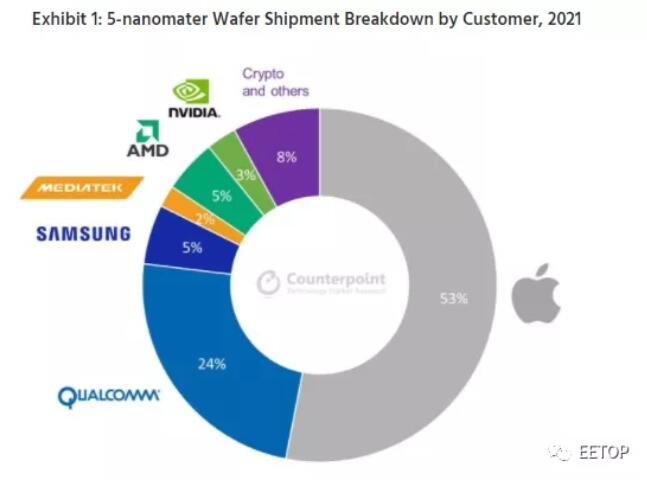 蘋果一家吃下全球53% 的5 納米制程晶圓數(shù)量