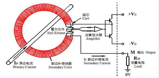 霍爾電流傳感器是根據(jù)霍爾效應(yīng)制作的一種磁場(chǎng)傳感器。它有兩種工作方式,即開環(huán)(直放式)和閉環(huán)(磁平衡式)。直放式霍爾傳感器的優(yōu)點(diǎn)是電路形式簡(jiǎn)單,成本相對(duì)較低;其缺點(diǎn)是精度、線性度較差,響應(yīng)時(shí)間較慢,溫度漂移較大。為了克服它的不足,出現(xiàn)了閉環(huán)(磁平衡式)霍爾電流傳感器。