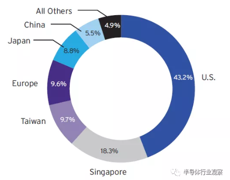 美國半導體制造商在美國的制造基地比其他任何國家都多,盡管這一比例在過去8年中穩(wěn)步下降