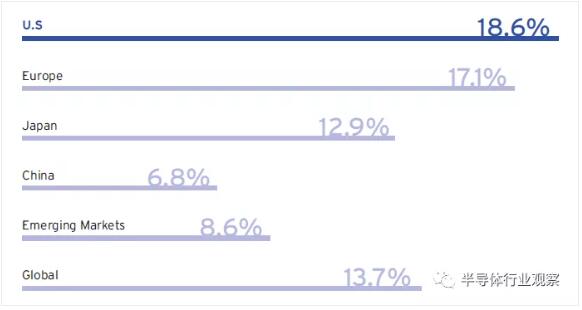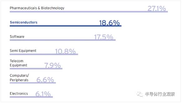 美國半導體行業(yè)的研發(fā)指出占銷售額的百分比是美國所有行業(yè)中[敏感詞]水平之一