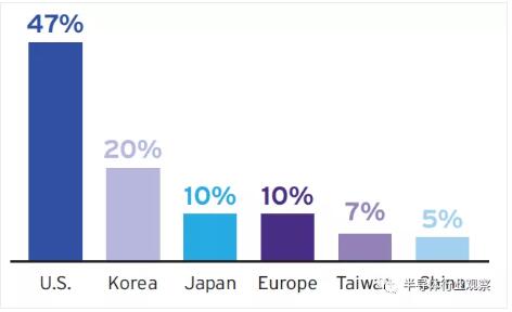 按區(qū)域劃分的美國半導體制造商晶圓產能百分比