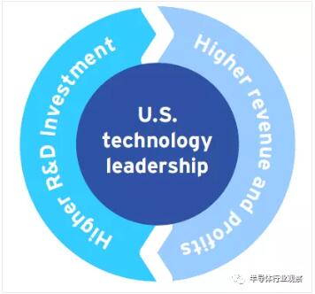 全球銷售市場份額的領先地位也使美國半導體行業(yè)受益于創(chuàng)新的良性循環(huán);銷售領導力使美國半導體產業(yè)能夠在研發(fā)方面投入更多資金,這反過來又有助于確保美國的銷售領導力。只要美國半導體行業(yè)保持全球市場份額的領先地位,它將繼續(xù)受益于這種創(chuàng)新的良性循環(huán)。