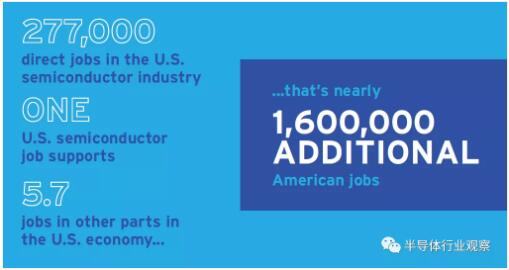 美國半導體行業(yè)在美國創(chuàng)造了25多萬個直接就業(yè)崗位,以及近160萬個額外的間接就業(yè)崗位