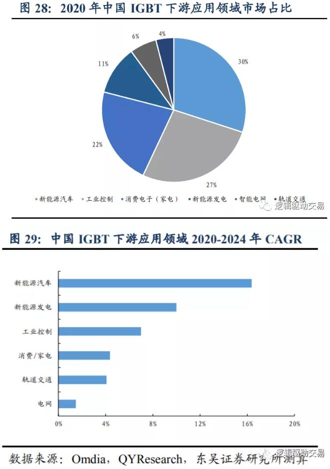 新能源汽車IGBT 2020-2024年復(fù)合增長率預(yù)計(jì)17%,新能源發(fā)電超過10%,是目前炒作IGBT最重要的邏輯之一。