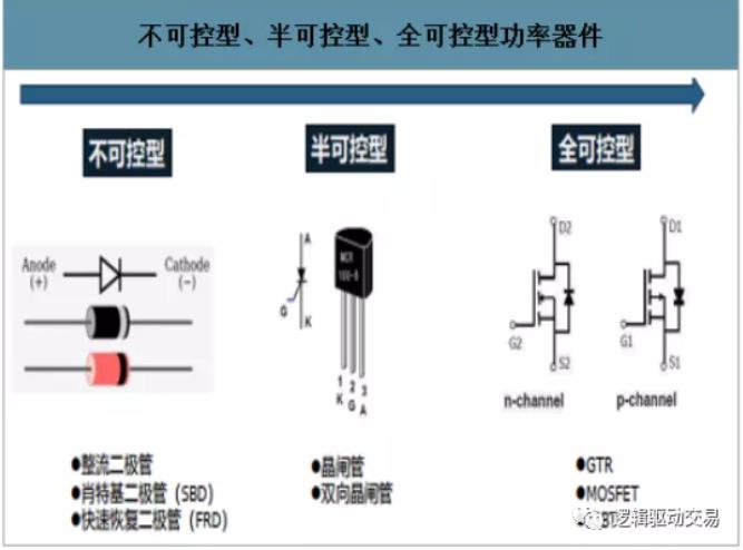 功率半導(dǎo)體器件:按照控制種類可以分為不可控型、半可控型、全控型三大類產(chǎn)品。