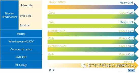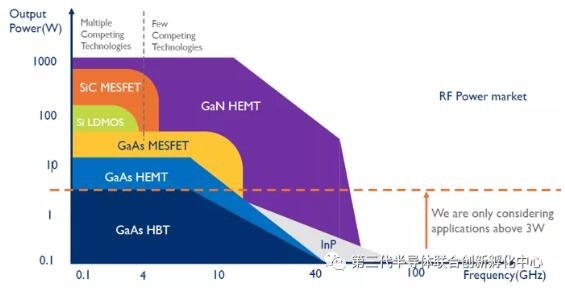 ▲不同材料體系射頻功率晶體管對比圖