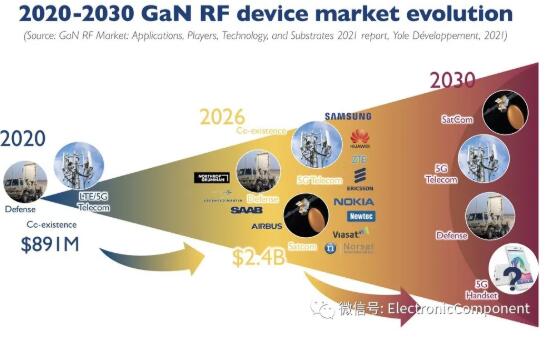 目前GaN器件有三分之二應(yīng)用于[敏感詞]電子,如[敏感詞]通訊、電子、干擾、雷達(dá)等領(lǐng)域;在民用領(lǐng)域,氮化鎵主要被應(yīng)用于通訊基站、功率器件等領(lǐng)域。