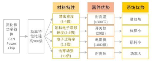 氮化鎵的帶隙為3.4eV,而現(xiàn)今最常用的半導(dǎo)體材料硅的帶隙為1.12eV,因此氮化鎵在高功率和高速元件中具有比硅元件更好的性能。