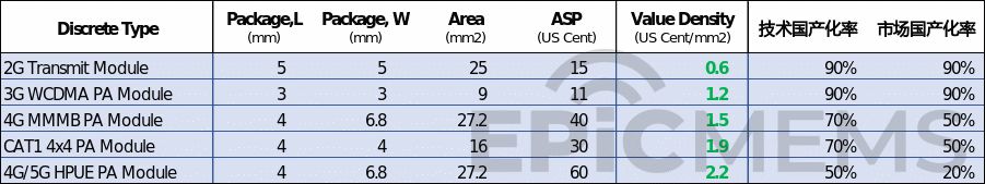 b) 4G向CAT1演進(jìn)的小型化產(chǎn)品,以及向HPUE或者Phase5N演進(jìn)的大功率PA,VD值增加到了2附近。
