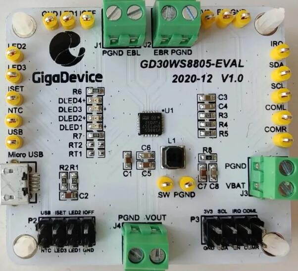 圖2:兆易創(chuàng)新GD30WS8805-EVAL全功能開發(fā)板實(shí)物圖,U1即是PMIC