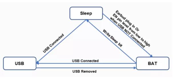 在上述方案中,電源管理芯片GD30WS8805具備三種模式,分別是USB模式、BAT模式和Sleep模式。當(dāng)USB[敏感詞]、耳機(jī)[敏感詞]、充電完成等狀態(tài)發(fā)生時,內(nèi)部寄存器相應(yīng)位會改變,同時會發(fā)出一個中斷脈沖,讓MCU讀取寄存器變化值,進(jìn)行相應(yīng)的充放電管理。USB模式下,方案可以同時給充電盒鋰電池和耳機(jī)鋰電池充電,耳機(jī)充電優(yōu)先。兩只耳機(jī)擁有獨(dú)立的兩路充電回路,可以單獨(dú)為一只耳機(jī)進(jìn)行充電。除此之外,GD30WS8805還擁有多種保護(hù)和檢測功能,如電池過壓、過流、過溫保護(hù),耳機(jī)過壓、過流保護(hù),USB[敏感詞]拔出檢測、耳機(jī)[敏感詞]拔出檢測等。
