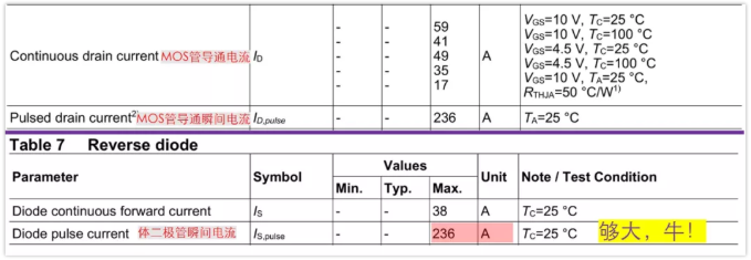 所以,體二極管能通過的電流就是根據(jù)功耗限制來的沒跑了。