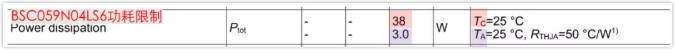 可以看到,在Tc=25℃時,功耗限制是38W,前面知道導(dǎo)通電壓是1V,電流限制是38A,正好功耗限制等于電壓乘以電流,這也太巧了。