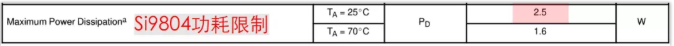 從上圖可以看到,環(huán)境溫度25℃的[敏感詞]功耗是2.5W。這么看的話,前面說的持續(xù)電流是2.1A,應(yīng)該也是根據(jù)功耗限制來的。