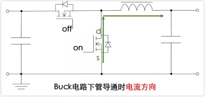 應(yīng)該都知道上面這是個buck電路吧,下管是NMOS管,在上管斷開,下管導(dǎo)通的時候,電感的電流來源于下管。