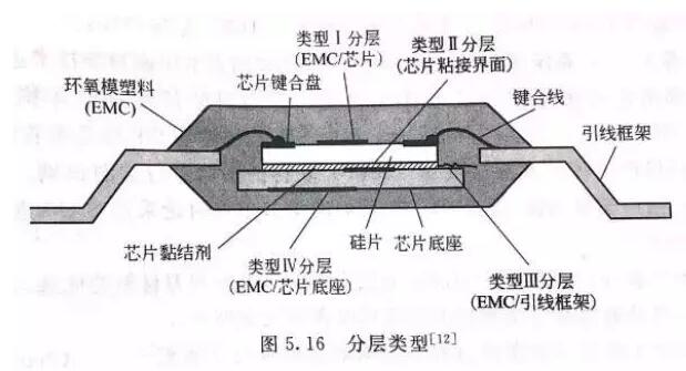 分層或粘結(jié)不牢指的是在塑封料和其相鄰材料界面之間的分離。分層位置可能發(fā)生在塑封微電子器件中的任何區(qū)域;同時(shí)也可能發(fā)生在封裝工藝、后封裝制造階段或者器件使用階段。