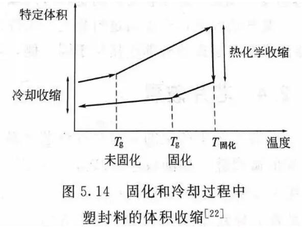 導(dǎo)致翹曲的原因主要包括CTE失配和固化/壓縮收縮。后者一開(kāi)始并沒(méi)有受到太多的關(guān)注,深入研究發(fā)現(xiàn),模塑料的化學(xué)收縮在IC器件的翹曲中也扮演著重要角色,尤其是在芯片上下兩側(cè)厚度不同的封裝器件上。在固化和后固化的過(guò)程中,塑封料在高固化溫度下將發(fā)生化學(xué)收縮,被稱為“熱化學(xué)收縮”。通過(guò)提高玻璃化轉(zhuǎn)變溫度和降低Tg附近的熱膨脹系數(shù)變化,可以減小固化過(guò)程中發(fā)生的化學(xué)收縮。