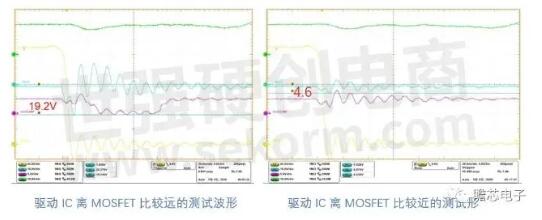 SiC MOSFET振蕩問題最關(guān)鍵的是首先要解決驅(qū)動(dòng)回路振蕩問題,防止因?yàn)轵?qū)動(dòng)信號(hào)振蕩而導(dǎo)致的振蕩。為了解決驅(qū)動(dòng)回路振蕩,需要將驅(qū)動(dòng)芯片盡可能靠近SiC MOSFET的柵極,盡可能減小寄生電感,減少振蕩。下面兩張圖,上圖為驅(qū)動(dòng)芯片離SiCMOSFET比較遠(yuǎn)的測(cè)試波形,下圖為離的比較近的測(cè)試波形。兩圖中天藍(lán)色波形為Vgs波形,[敏感詞]為Vds波形。左圖中米勒尖峰高達(dá)19.2V,右圖的米勒尖峰只有4.6V,改善這么大的主要原因就是驅(qū)動(dòng)IC離SiC MOSFET比較近。