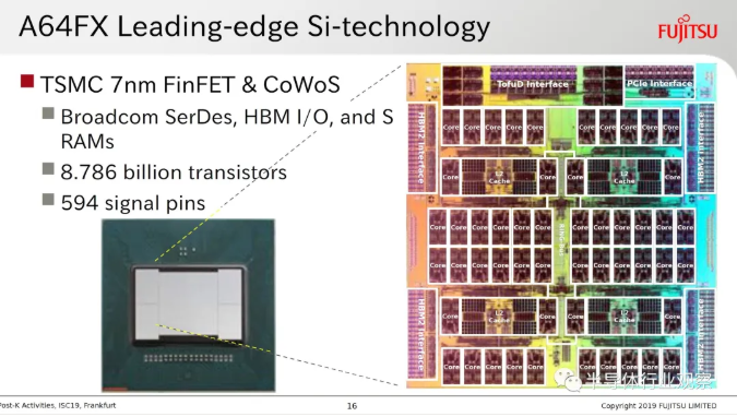 臺積電后端技術(shù)包括 CoWoS(Chip on Wafer on Substrate)和 InFO(Integrated Fan-out)系列封裝技術(shù),已經(jīng)廣泛落地。例如今年全球 TOP 500 超算榜排名[敏感詞]的日本超算 " 富岳 " 所搭載的 Fujitsu A64FX 處理器采用了臺積電 CoWoS 封裝技術(shù),蘋果手機芯片采用了臺積電 InFO 封裝技術(shù)。