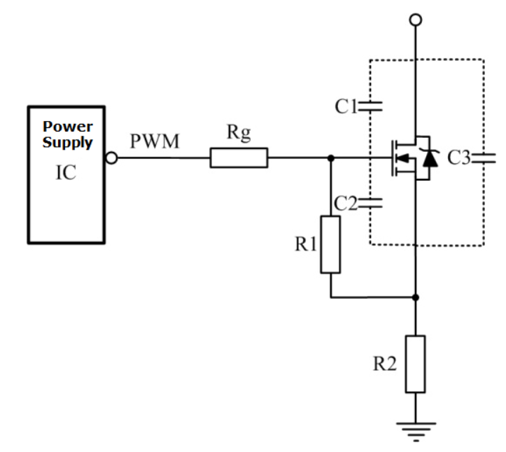 其次,檢查MOSFET的寄生電容,如圖中的C1、C2和C3,如果容值較大,導(dǎo)通MOS管所需的能量也比較大。如果電源IC沒有足夠的峰值驅(qū)動電流,晶體管將以較慢的速度開啟。