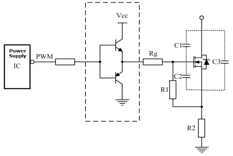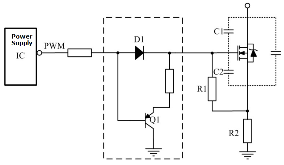 在關(guān)斷的瞬間,驅(qū)動電路可以提供盡可能低阻抗的通路,使MOSFET的柵極和源極之間的電容快速放電,保證開關(guān)管可以快速關(guān)斷。