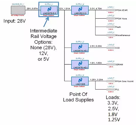 因此,我們可以看到,對(duì)于這種大型系統(tǒng)而言,單POL電源情況下我們所看到的這些參數(shù)均沒(méi)有明顯的趨向。這是因?yàn)?,使用多個(gè)穩(wěn)壓器時(shí),除中間軌穩(wěn)壓器本身以外,每個(gè)穩(wěn)壓器都有其不同的負(fù)載電流和電壓要求,而這些需求可能會(huì)相互沖突。研究這種情況的[敏感詞]方法是使用如 WEBENCH 電源設(shè)計(jì)師等工具,對(duì)不同的選項(xiàng)進(jìn)行評(píng)估