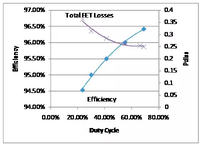 假設(shè)一個(gè)負(fù)載點(diǎn) (POL) 穩(wěn)壓器時(shí)我們可以規(guī)定某個(gè)中間電壓軌的額定輸入電壓,那么[敏感詞]解決方案是什么呢,是高輸入電壓/低占空比,還是低輸入電壓/高占空比呢?使用不同輸入電壓對(duì)占空比進(jìn)行調(diào)制,同時(shí)查看 FET功耗情況。